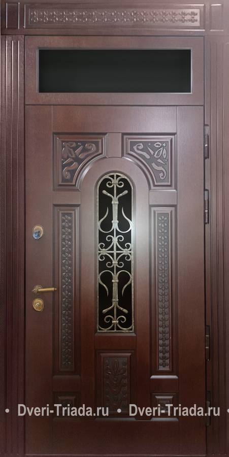 Парадная дверь с ковкой и резьбой