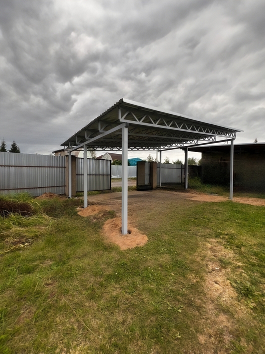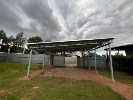 Односкатный автомобильный навес из профнастила серого цвета Арт-711